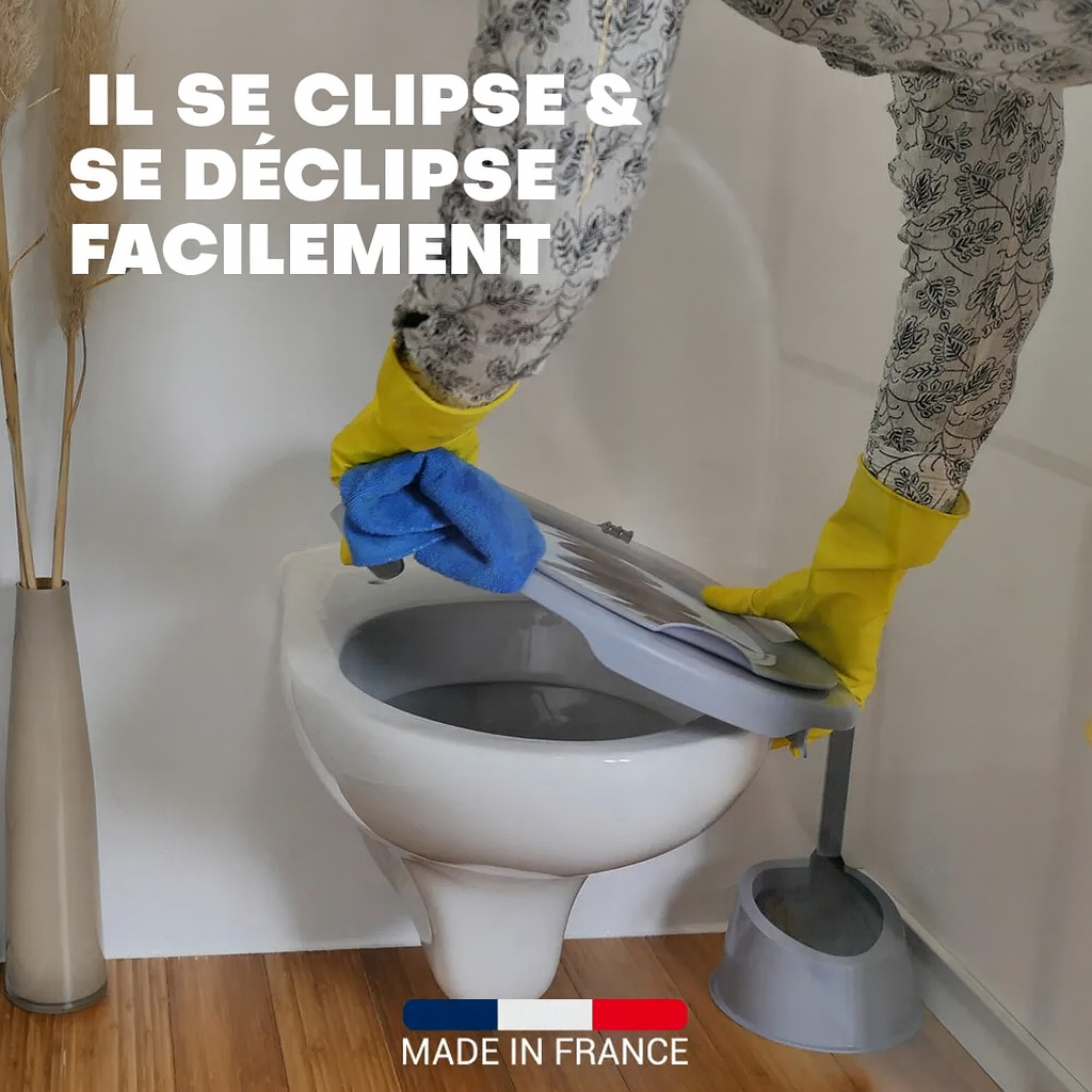 Grâce à son système clipsable/déclipsable, il vous permet de retirer l’abattant sans outil, en un seul geste. Fini les saletés et bactéries invisibles entre les fixations !